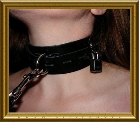 But d'un Collier: Le principal but d'un collier est de pouvoir y attacher divers liens, comme les cordes ou les chaînes. Elles-mêmes seront attachées par l'autre extrémité au sol ou au mur, ou aux autres entraves, placés le plus souvent aux poignets et aux chevilles. Ces liens ont pour but de gêner et limiter voire empêcher les déplacements de la soumise. Un collier doit pouvoir accueillir une laisse afin de guider la soumise pour son "dressage".